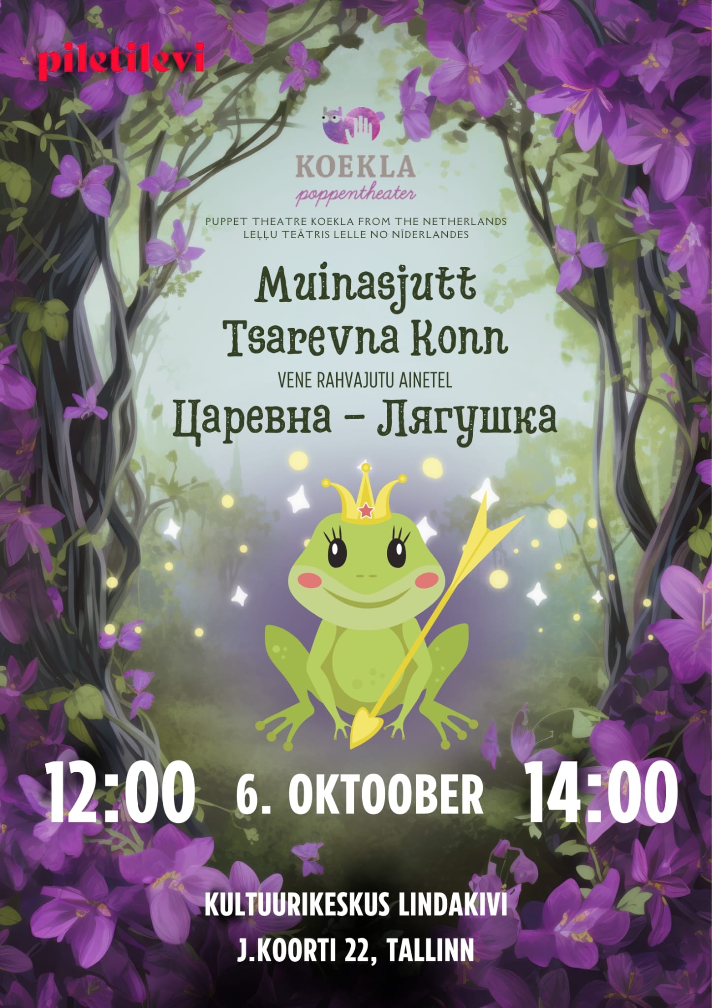 Премьера в Таллине! октября 🌺🐸👑Гастроли в Латвии прошли с большим успехом и театр “Koekla” едет в Таллин! Это первый показ театра “Koekla” в Эстонии у вас есть уникальная возможность первыми стать частью этой волшебной истории. Дата и время: октября, 12:00 и 14:00🎟 Билеты Место: Lindakivi kultuurikeskus Представьте себе момент, когда ваши дети замирают от восторга,… Continue reading 6 октября: Заколдованная Царевна.